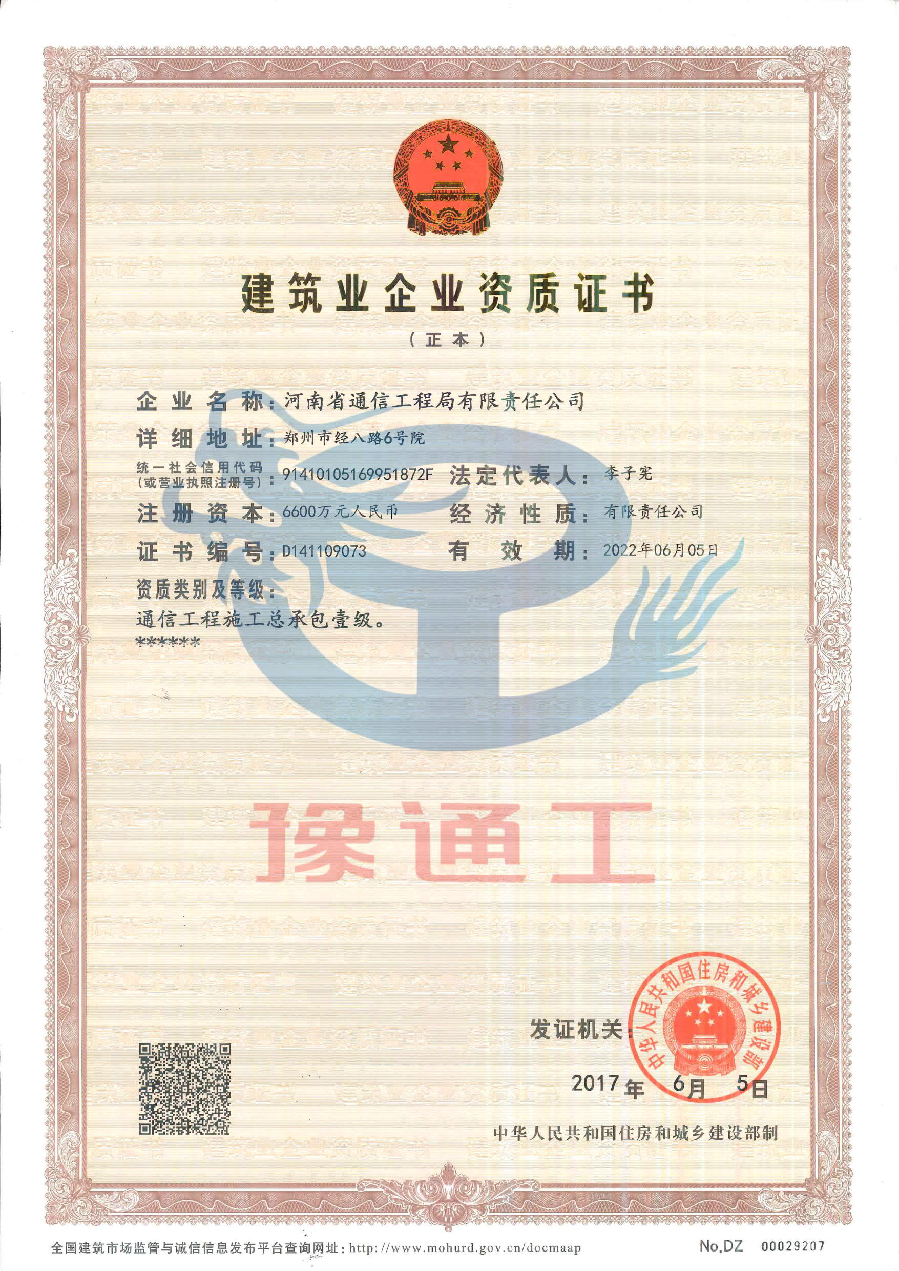 通信工程施工總承包壹級(jí)
