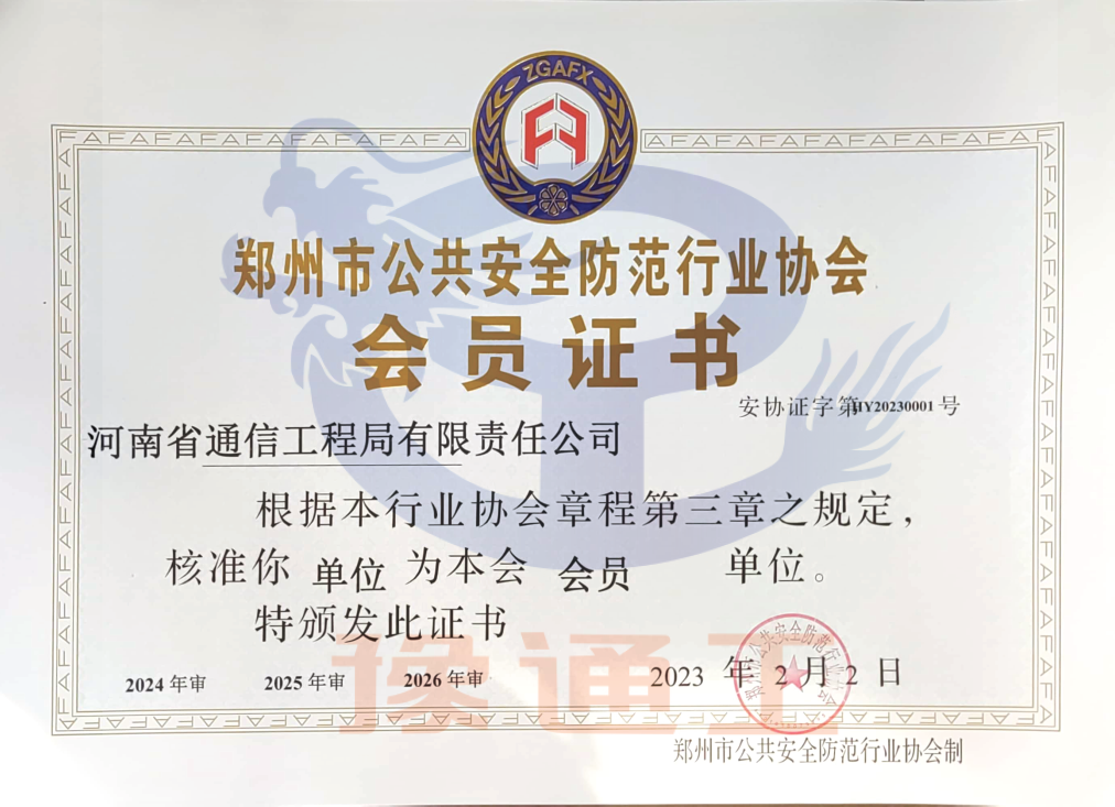 鄭州市安防協(xié)會(huì)會(huì)員證書(shū)