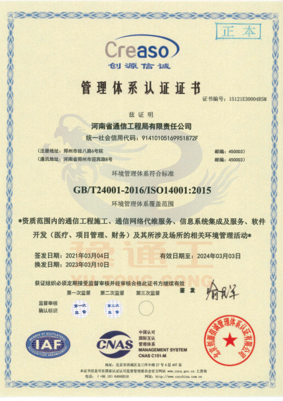 管理體系認(rèn)證證書(shū)(環(huán)境管理)